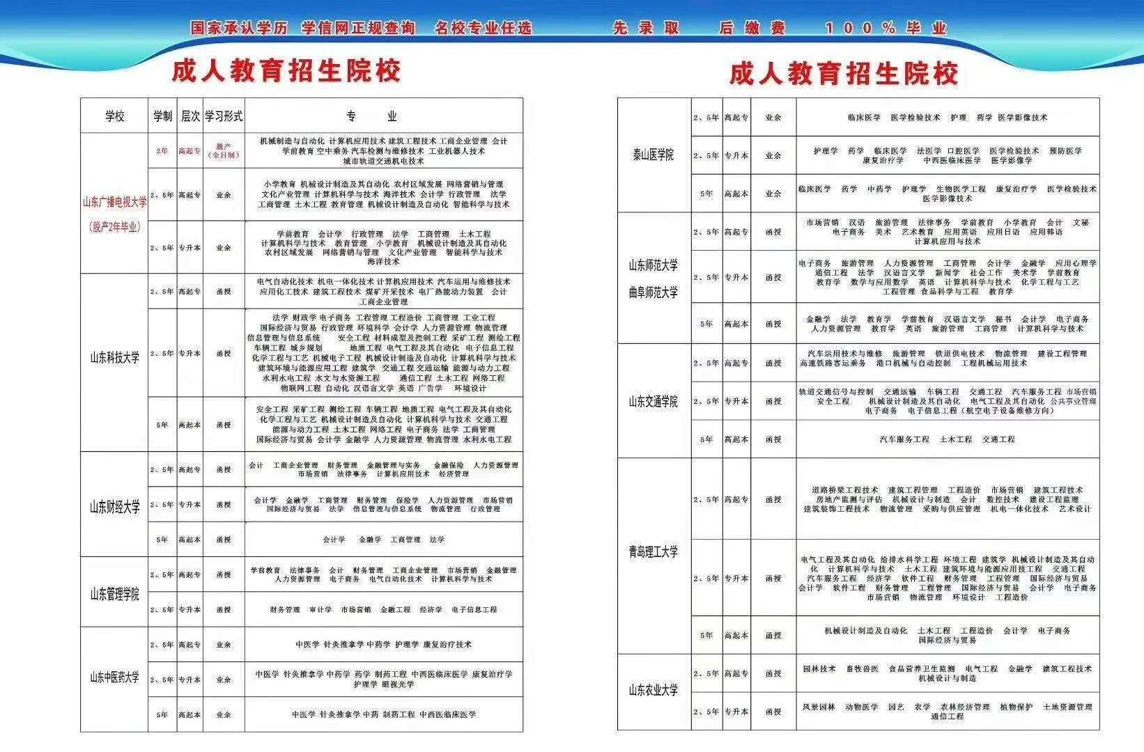 2020年成人教育招生院校